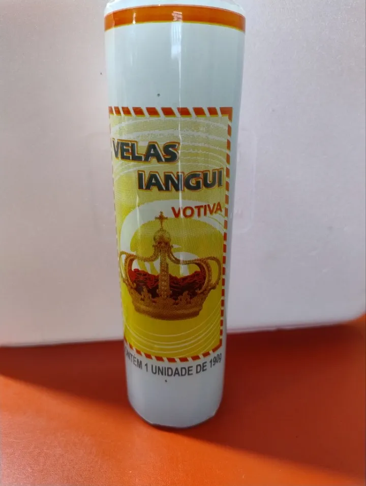 Bem-vindos à Velas iangui - Fábrica de Velas Velas Votivas de 210Gramas. Cor Disponível: Branca. coloridas ,bicolor,tricolor Duração: Aproximadamente 7 dias, sendo uma estimativa, podendo variar para mais ou para menos dependendo de diversos fatores, como o lote da matéria-prima, o local e o recipiente em que for acesa. Umidade, correntes de ar, temperatura do local e movimentos na vela podem afetar sua duração. Dimensões: 15x 5cm (44mm). Agradecemos sua visita, estamos à disposição